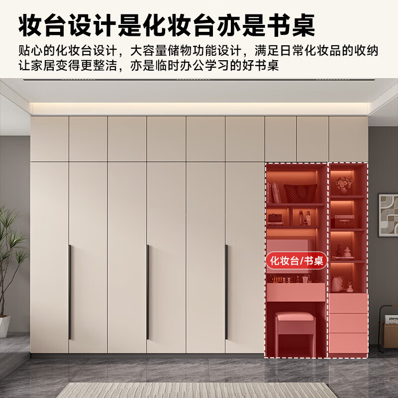 奥伯豪实木衣柜卧室家用大衣柜出租房现代简约衣橱四门衣柜带书桌组合 1.6米【四门】主柜